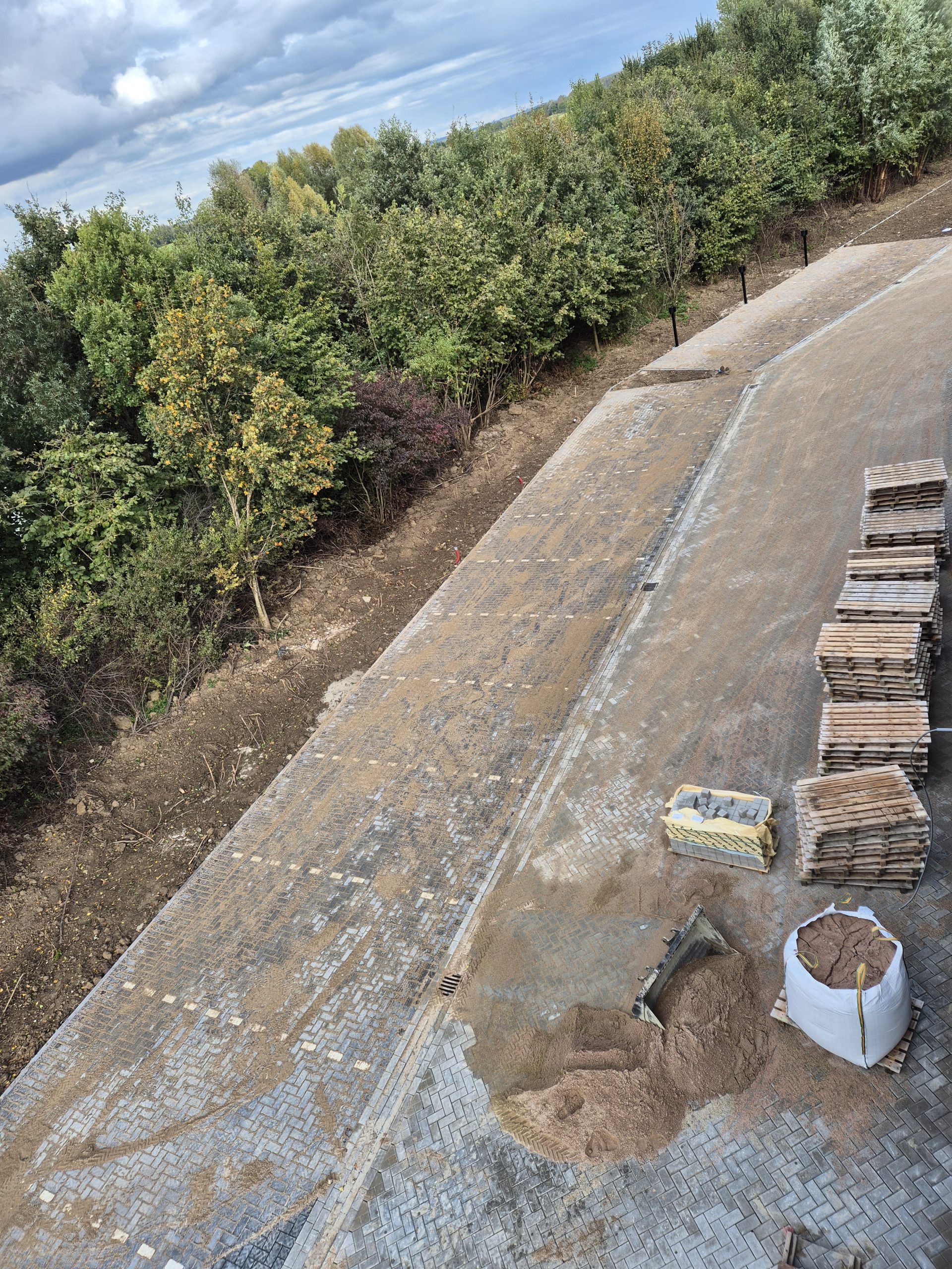 Na afronding van het grondwerk zijn we gestart met het straatwerk. Voor dit project werd gekozen voor een combinatie van functionele bestrating en sierbestrating, waarbij duurzaamheid en uitstraling centraal stonden. Dankzij onze ervaring konden we niet alleen een stevige fundering aanleggen, maar ook een strakke en professionele afwerking garanderen. De bestrating is uitgevoerd met hoogwaardige materialen, en dankzij een nauwkeurige legtechniek blijft het terrein bestand tegen zware belasting en weersinvloeden.